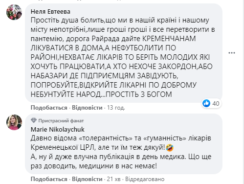 Даний допис викликав бурхливе обговорення користувачів соцмережі, які не стримували себе у висловлюваннях про лікарів та медзаклад.