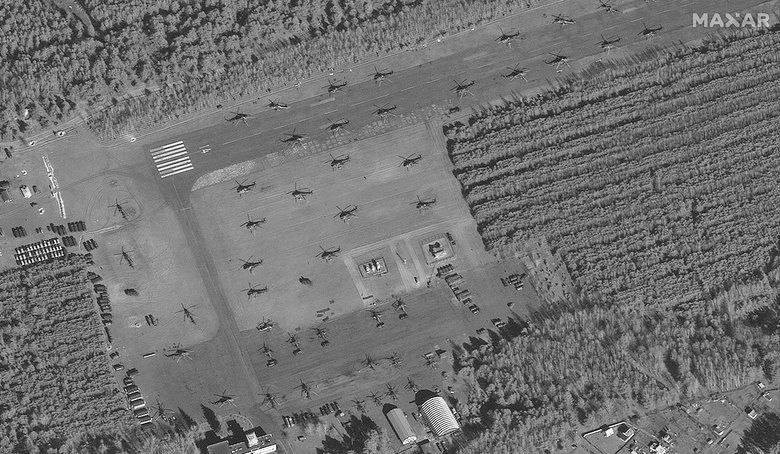 Кілька десятків гелікоптерів та інша техніка розмістилися на аеродромі Великий Боків, що всього лиш за 50 кілометрів від українського кордону.