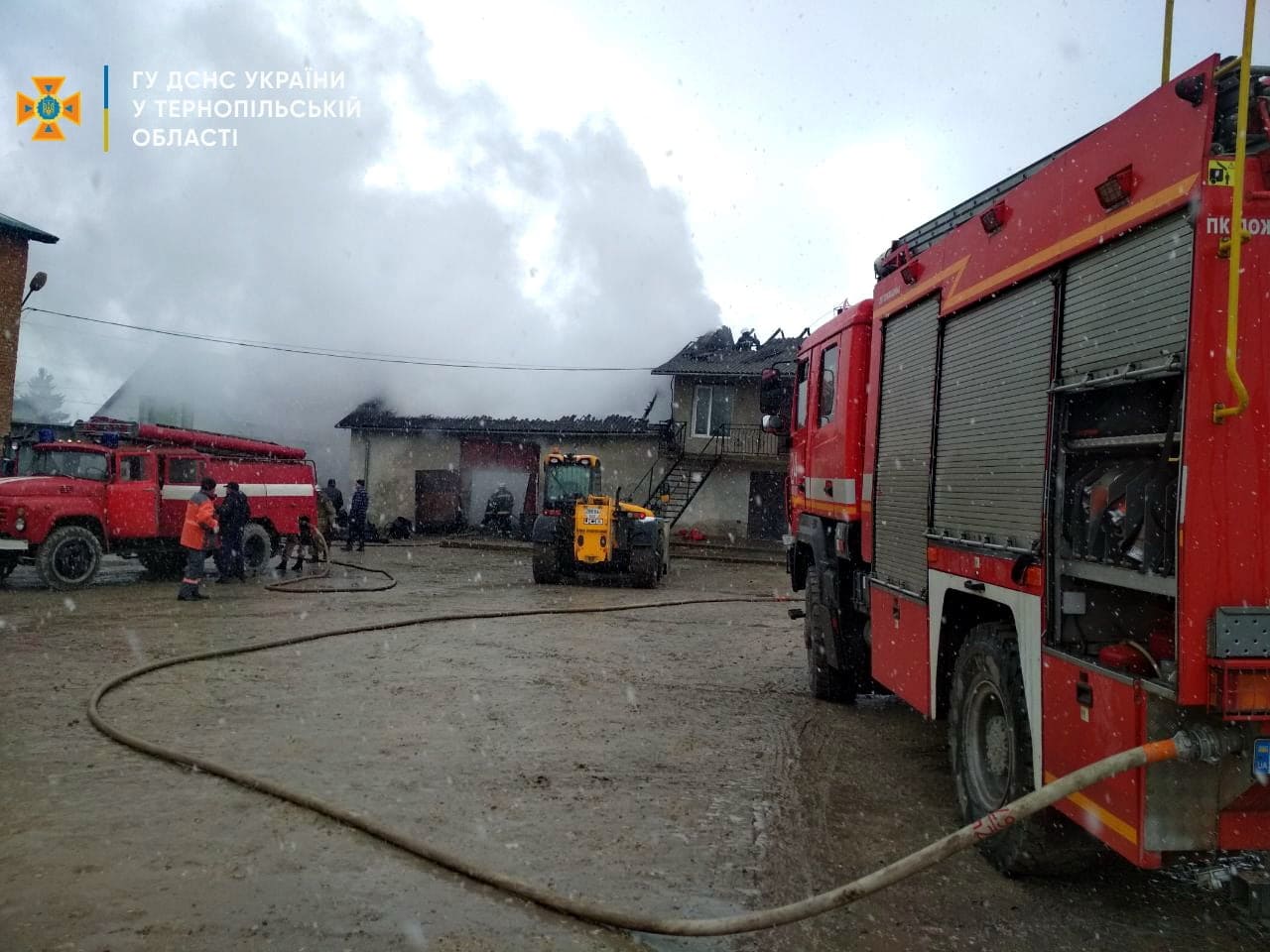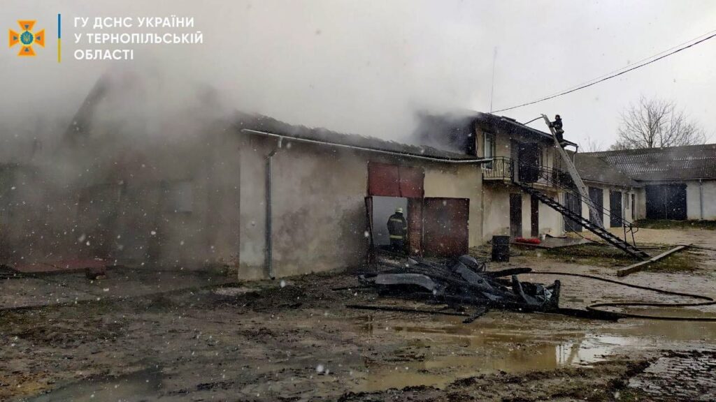 У місті Скалат спалахнуло сільськогосподарське підприємство. Вогонь захватив більш як 100 квадратних метрів площі.